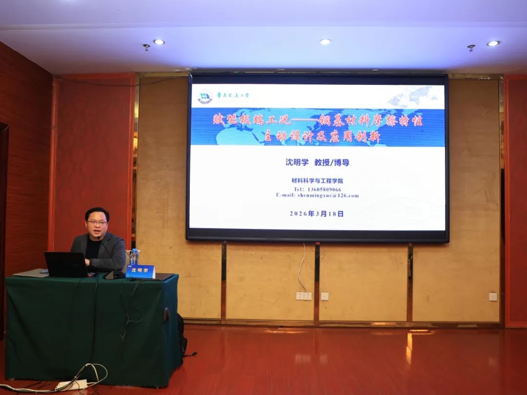 华东交通大学材料科学与工程学院院长沈明学教授作《赋能极端工况——铜基材料摩擦特性主动设计及应用创新》报告,系统阐述了高端装备用铜基材料的创新设计与应用。